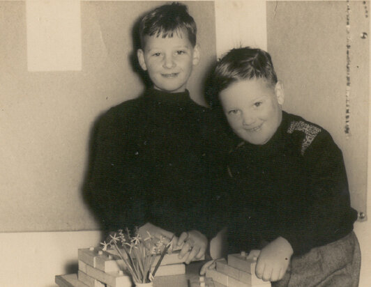 The tapestry of our family expanded as I arrived in late 1950, followed by my brother Rob in 1952, and finally, my younger brother Dick in 1953. The apartment walls, once spacious, now echoed with the joyous cacophony of three lively children. My mischievous exploits only added to the symphony of our home. At times, I wandered off on grand adventures, once accompanying street organ players, lost in the enchanting rhythm of their melodies. Another escapade led me far from home, only to be reunited with my exasperated mother with the help of the local authorities.