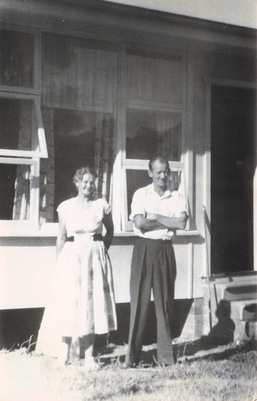 Mum and Dad outside their first home